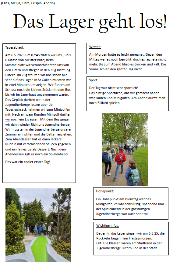 Klassenverlegung Mai 2025